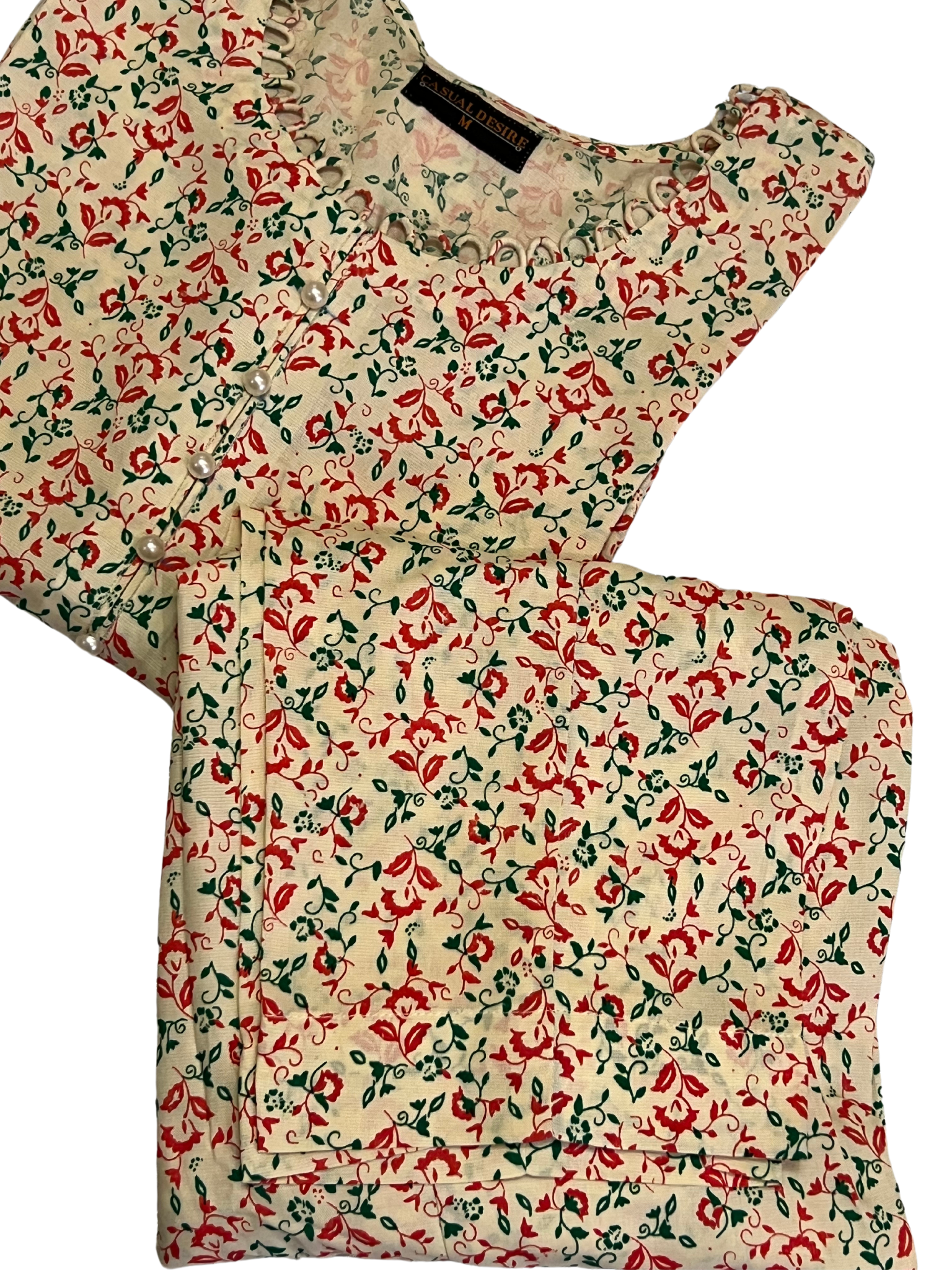 Pearl Grace β Where classic charm meets modern comfort. This 2-piece outfit, made from a soft lawn-cotton blend, is light, breathable, and beautifully refined. Finished with pearl buttons that add a touch of timeless elegance and class.